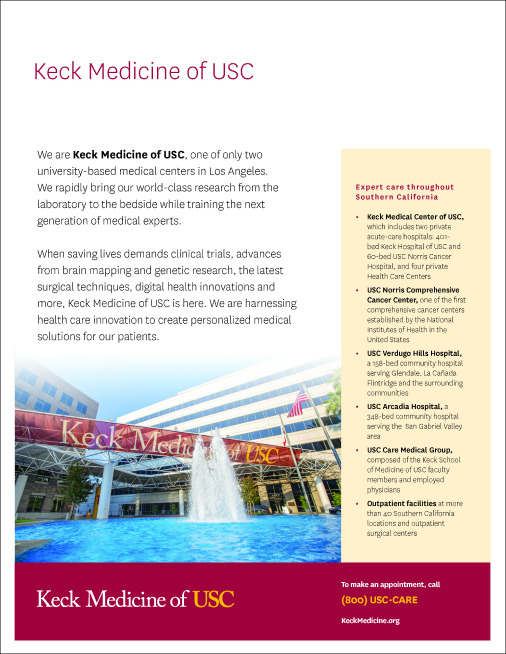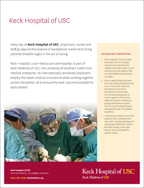 Keck Medicine of USC’s graphic identity is a system of coordinated design elements — graphics, colors, and typography — that serve as the health system’s visual signature. The guidelines within this site were created to encourage consistent, effective use of our graphic identity across all applications.